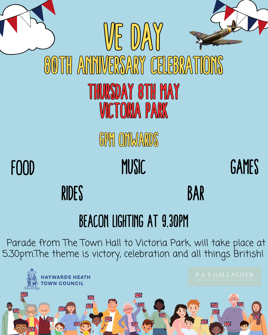 Haywards Heath proudly commemorated the 80th Anniversary of Victory in Europe (VE) Day on Thursday 8th May with a day filled with community spirit, remembrance, and celebration. The main event, held at Victoria Park, brought together residents, local groups, and dignitaries to honour this historic occasion.